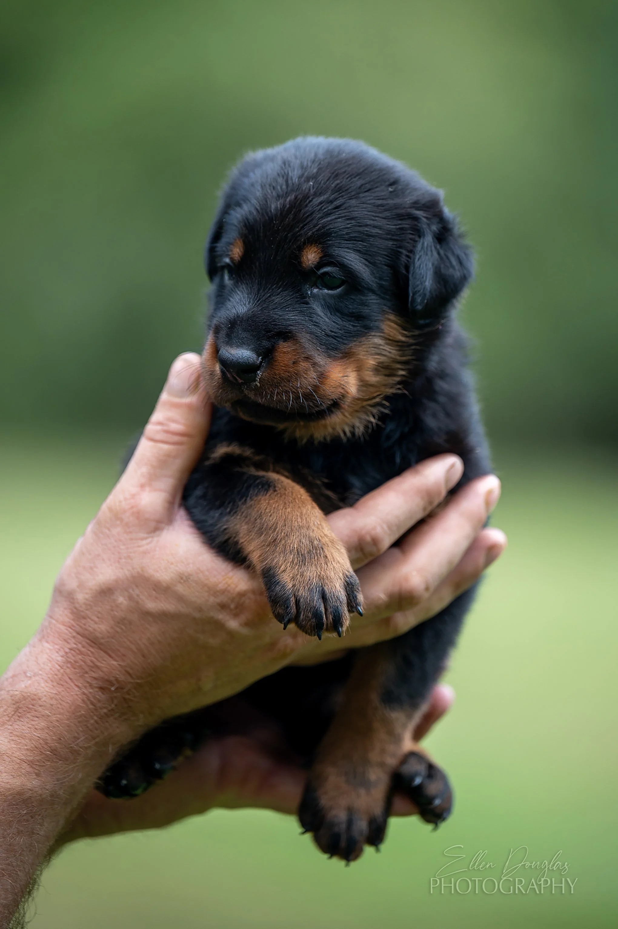 As she matures, Epic will complete her health testing and expand her training across different sports to find her best fit. Sweet like her mother but with her own fiery edge, she represents the next exciting generation for Feu de l’Âme Beaucerons.